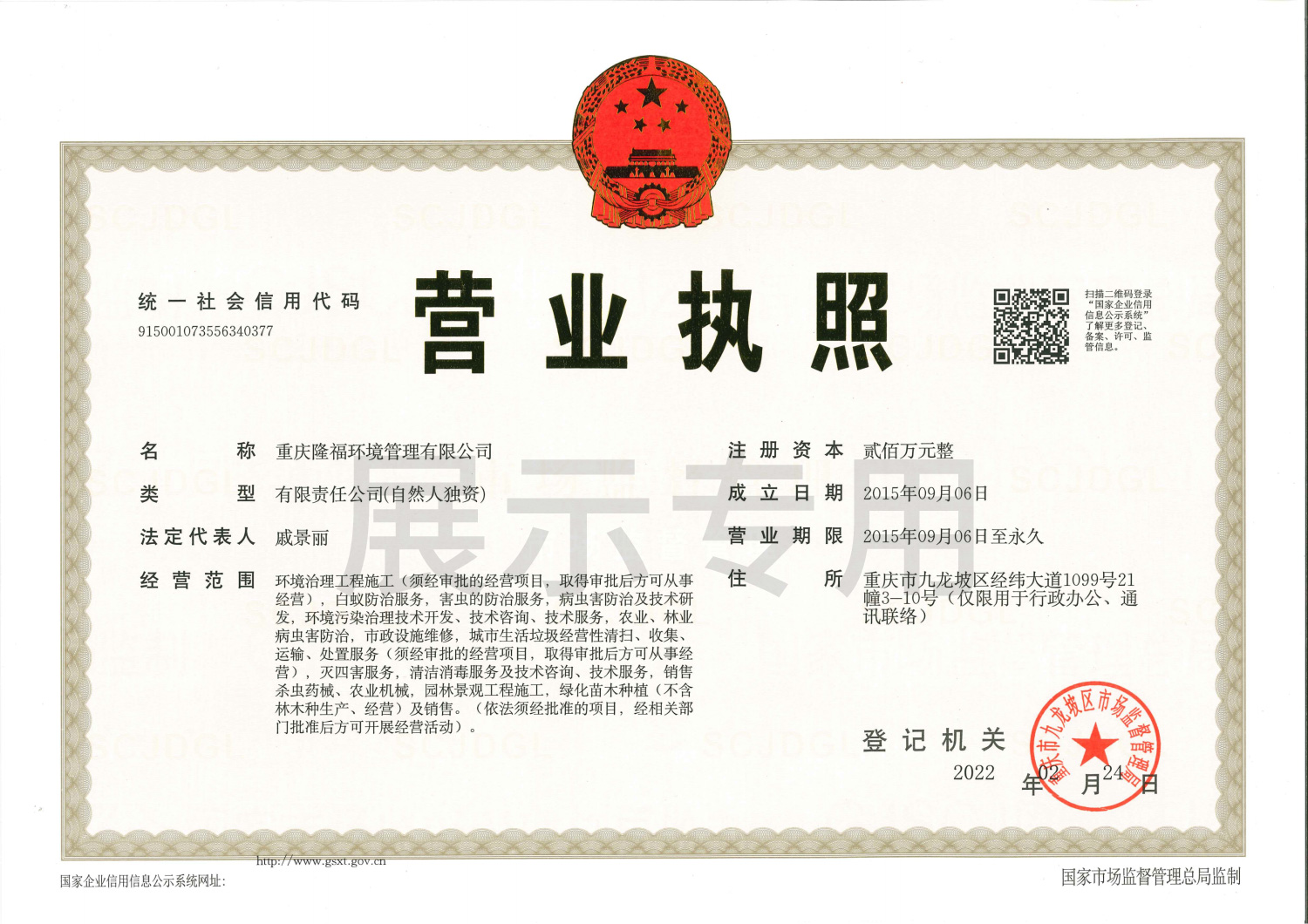 重慶隆福環(huán)境管理有限公司(以下簡稱“我司”)成立于2015年,另于2022年成立海南分公司。是一家從事專業(yè)白蟻防治、害蟲消殺、消毒防疫、園林景觀施工、滅蟲藥械銷售為一體的綜合性服務公司。